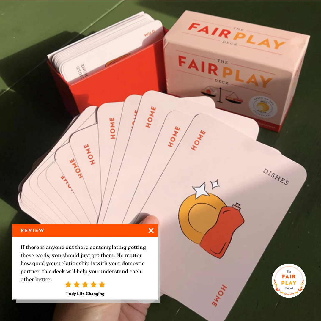Fair Play creates a household management system with 100 "cards" representing everything from packing lunches to managing finances, and ensures both partners understand exactly who owns what task, from start to finish. Part of what makes the Fair Play Method so helpful is that it provides couples with a new (and more neutral) vocabulary to talk about domestic labor.